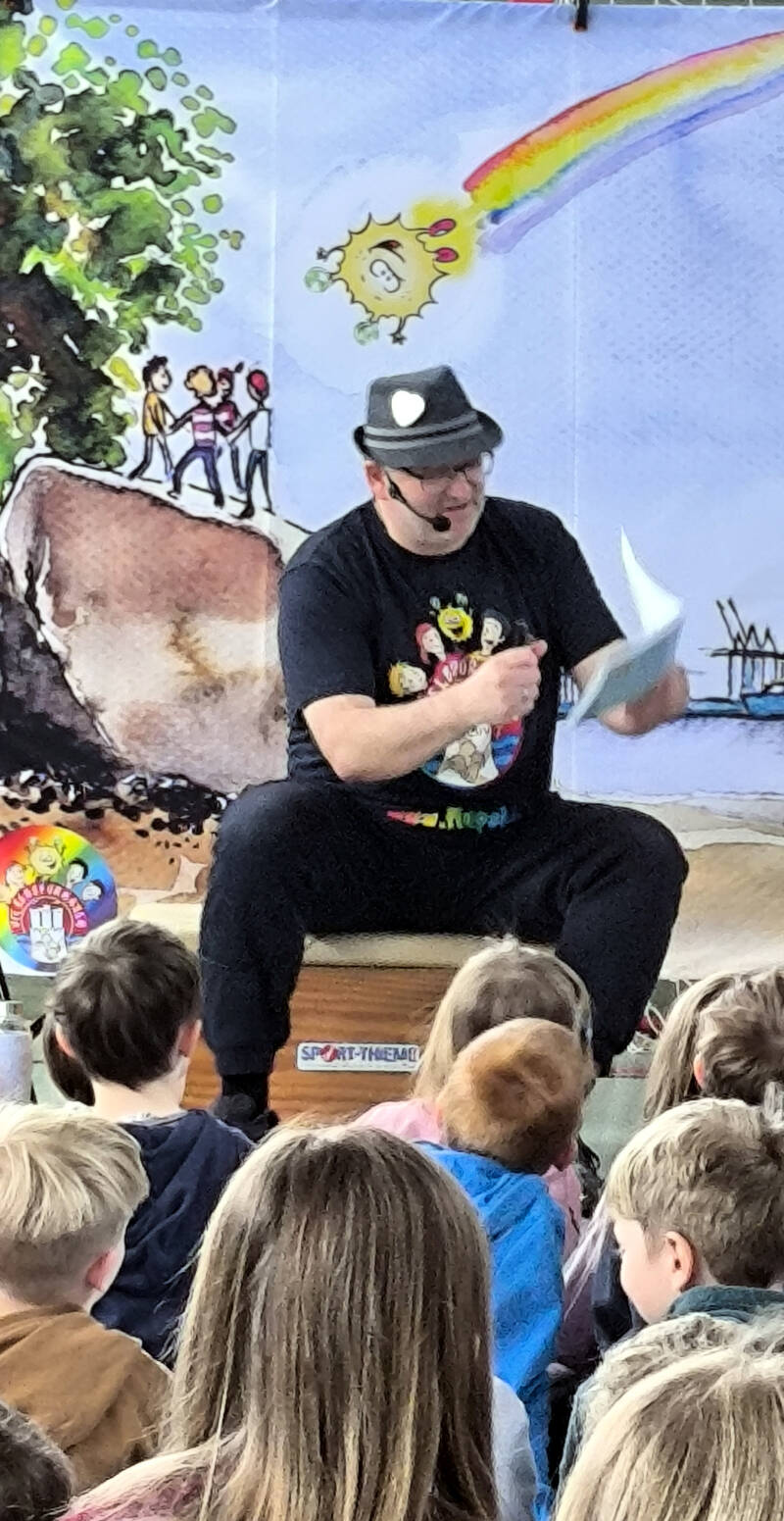 Es war eine echte Herausforderung, so viele Menschen in Bewegung zu bringen, aber ich habe es zunehmend gut gemeistert. Das Mitsingen war zwar etwas schwierig, doch die Mitmachelemente haben die Kinder hervorragend angenommen. Sie waren sehr aufmerksam und stellten im Anschluss viele interessante Fragen.